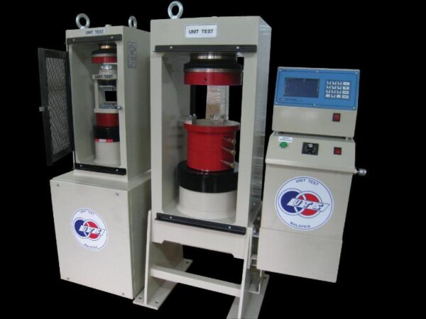 These twin frame machines are designed to test concrete with DHR (2 channel) digital readout. The machines are fixed with Servo motor with variable electronic Speed Control unit. In corporated with fast piston (ram) approach, system and supplied with standard distance pieces to test 150, 100, 70.7, 50mm and 40mm cube specimen and 40 x 40 x 160mm specimen with optional compression flexural jig.